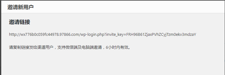 4、邀请用户:如该店铺未有邀请过渠道用户,可以在相应的渠道下邀请用户。如下图所示: