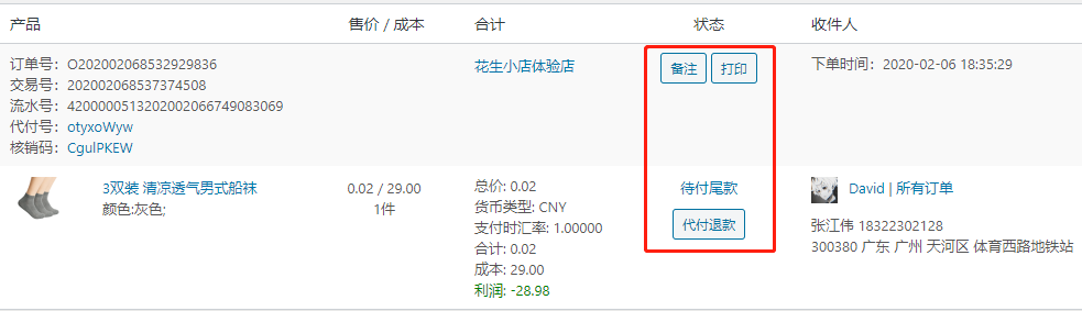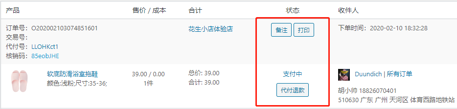 ③代付支付完成刷新:已支付的订单会显示此按钮,点击刷新订单并执行后续发货/退款操作